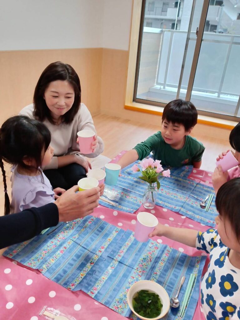 本当は園庭で行う予定だったので”ガーデンパーティー”という名前でしたが生憎の雨のため急遽室内で行いました 第二回はお外で食べられたらいいですね♫